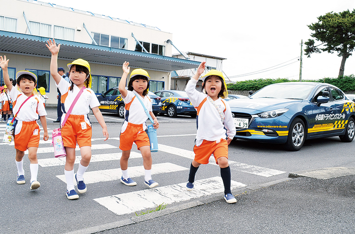 市内の各園でも交通安全に対する取り組みを行っている。富水幼稚園では毎年交通安全教室を実施。6月初旬には小田原ドライビングスクールの協力のもと教習コース内で道路の歩き方を練習した。