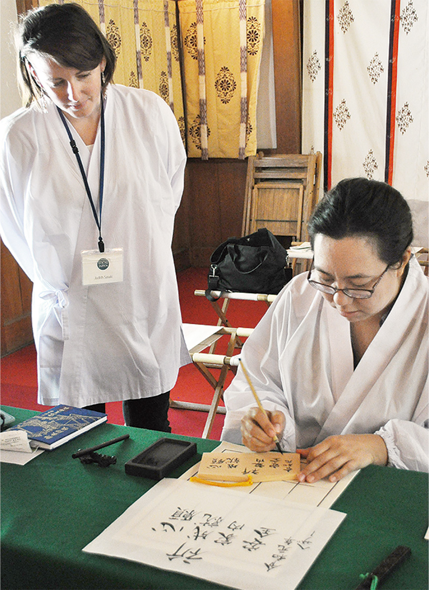 報徳二宮神社を拠点に歴史ある建物やお店、街並みなど、2時間から1日のツアーを企画している佐々木さん。6月17日に2時間のツアーに参加したアメリカ人のヘザー・トンプソンさんは、参道を歩きながら鳥居や狛犬、境内の説明を聞いた後、神社を正式参拝した。日本各地の神社をめぐっているトンプソンさんだが、英語で詳しく案内してもらえるガイドはこれまでなく、「たくさん説明してもらえて、すごく楽しい」と声を弾ませた。ツアーの最後には筆で絵馬に願い事を書く体験にも挑戦した。佐々木さんは「お客様の関心はさまざまなので、質問はいつも同じではない。どんなことにもすぐに答えられるように、日々勉強しています」と話している。