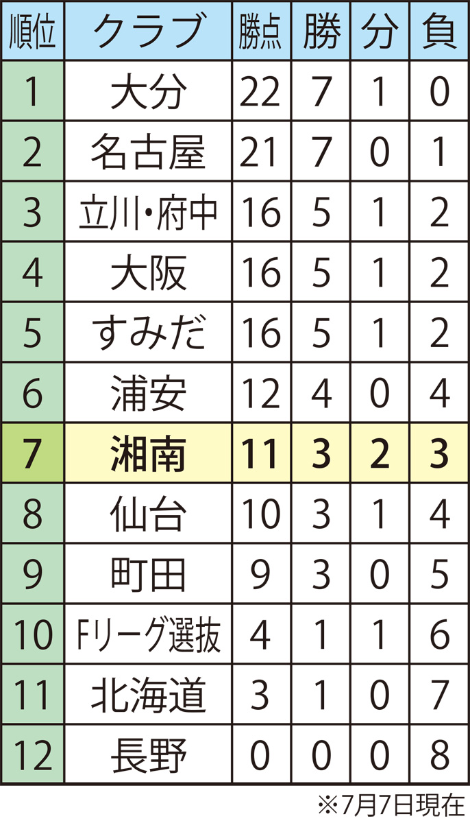 湘南は本日13日(土)に敵地で立川・府中と対戦。20日(土)には平塚総合体育館に北海道を迎える。午後2時キックオフ。前売券は大人1500円、小中高生が300円。小田原アリーナ等で販売中。(問)【電話】0465・43・6606