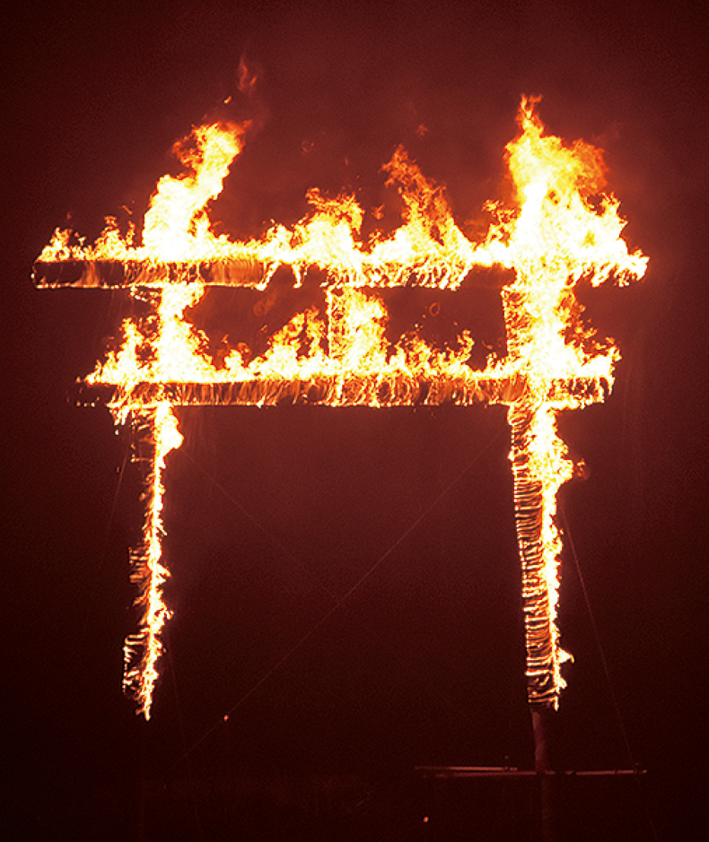 鳥居焼まつりは湖水に浮かぶ大鳥居二基に火が放たれ、花火や灯籠とともに湖水に写るさまは観客を魅了し毎年、多くの人で賑わう。少年少女の空手演武や箱根ばやしの演奏、ソーラン踊りの披露も。問い合わせは箱根町総合観光案内所【電話】0460・85・5700へ。