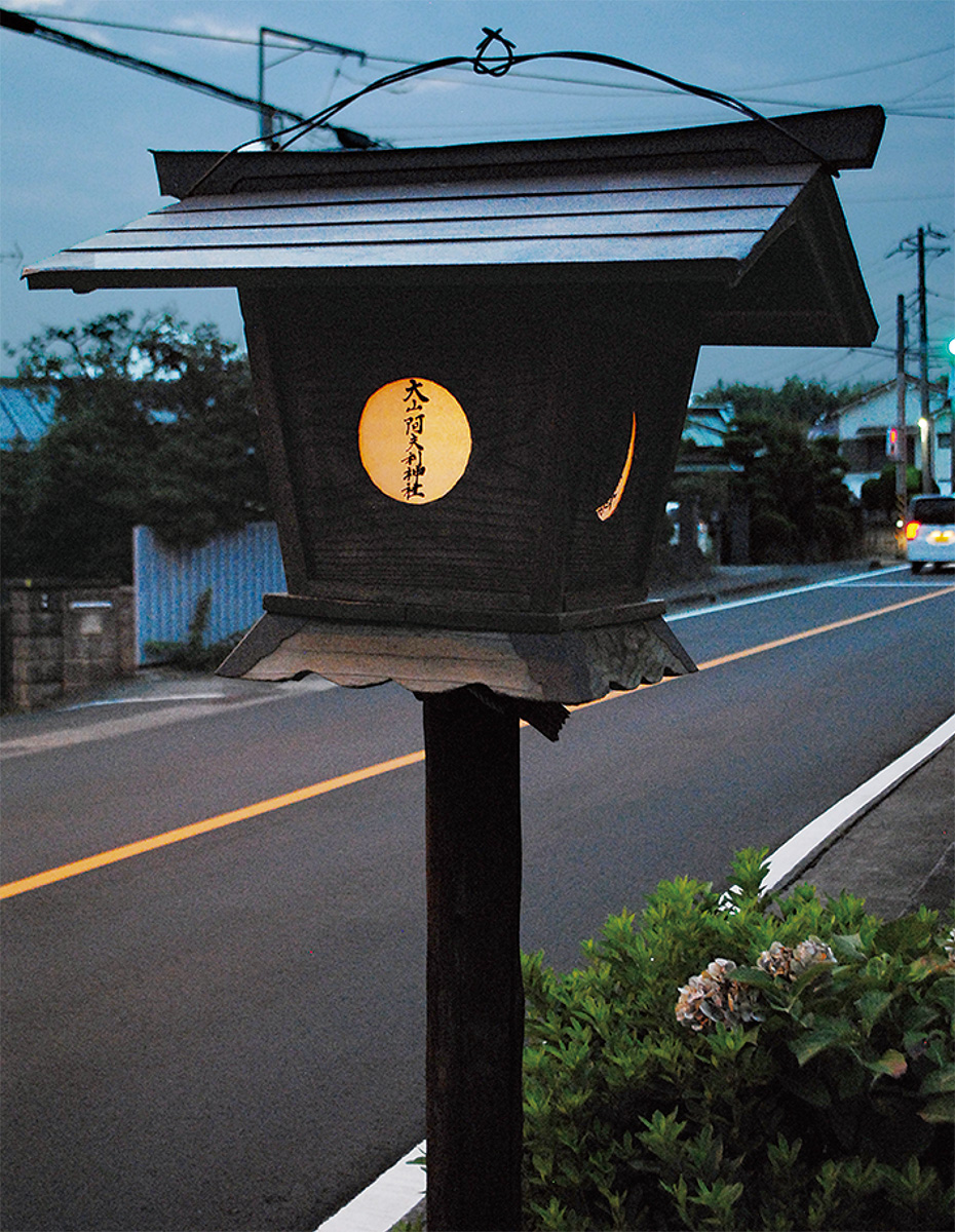 かつて、大山に登山が許されていたのは年間で7月27日から8月17日のみ。この開山期にあわせ、各講の代表者が大山参詣に向かった。残った者は地域に木製の大山灯篭を立て、ろうそくに火を灯して雨を乞い、「講中」と呼ばれる仲間の無事を祈った。現在は参詣することこそなくなったが、開山期になると日暮れにあわせて当番制で灯篭に火を灯し続けている。