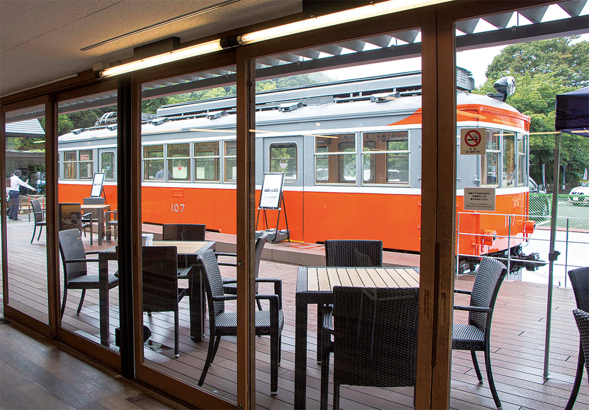 電車は7月に引退した箱根登山鉄道のモハ1形107号。木造のチキ1形から「大正」「昭和」「平成」「令和」の100年の歴史を駆け抜けた車両だ。カフェでは箱根百年水を使った地ビール「箱根ビール」や鈴廣のかまぼこを使ったメニューを提供。車両を眺めながらくつろぐもよし、車内で飲食を楽しむもよし。電車好きなお子さんやお孫さんはもちろん、家族や友達とホッと一息つける、小田原の新名所になりそうだ。