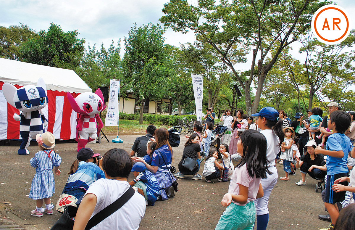 試合開始前には、小田原球場入口に東京2020オリンピック・パラリンピックの公式マスコット、ミライトワとソメイティが登場。ゴールドパートナーの野村證券(株)小田原支店(宮里洋介支店長)が主催するイベントで、公式マスコットが県西地域に来るのは初めて。多くの家族連れで賑わい、応援ソング『パプリカ』の曲に合わせて踊りを楽しんだ。