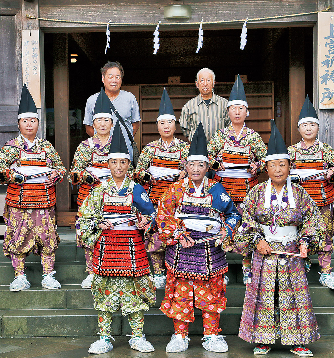 湯河原の「焼亡(じょうもう)の舞保存会」(鈴木公子会長)が9月16日、鎌倉の鶴岡八幡宮で舞を奉納した。