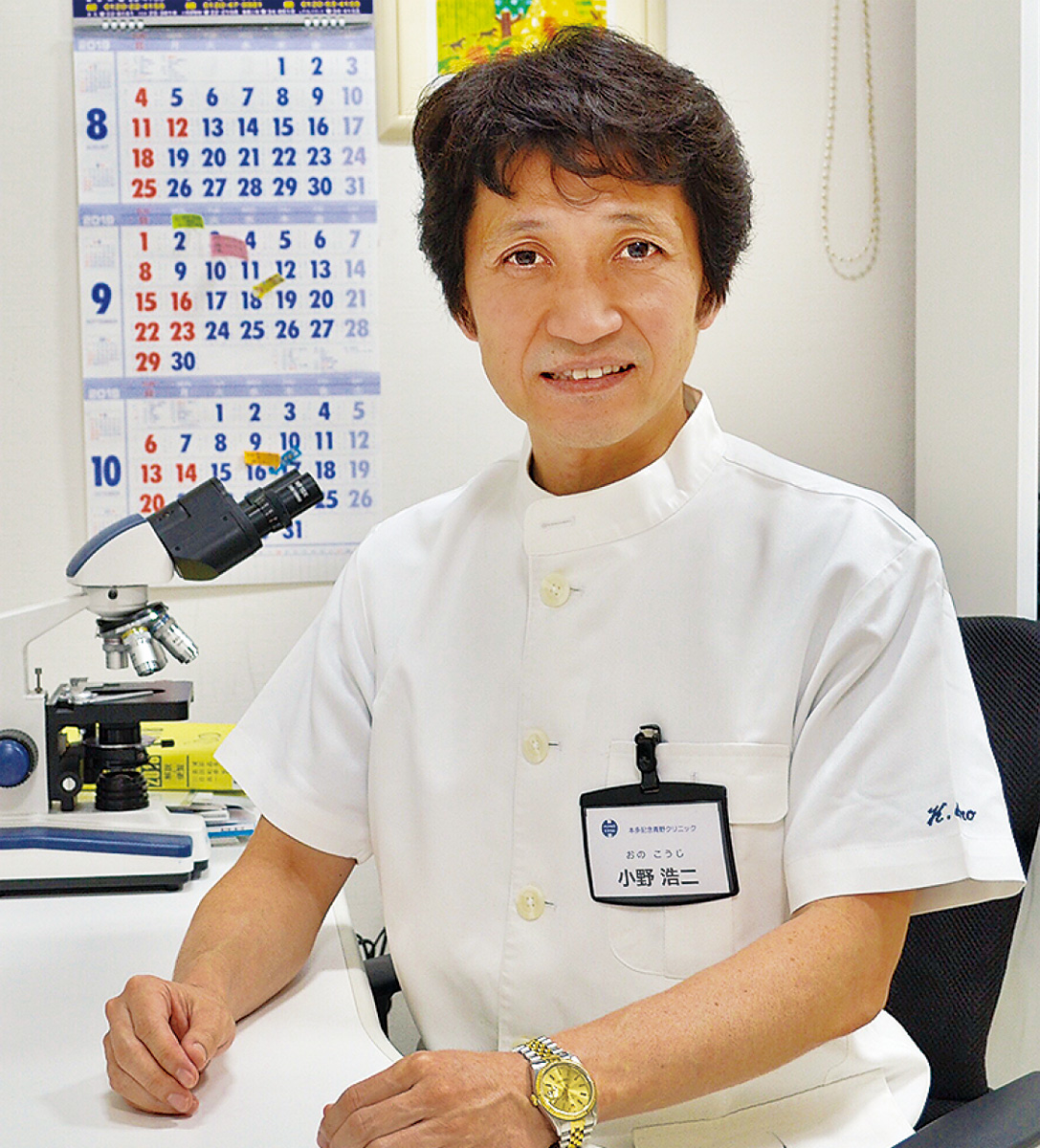 この度、同じく間中病院で12年内科の外来を担当していた小野浩二医師(52)が、常勤医としてクリニックに仲間入りした。形成外科・皮膚科と複数の診療科に在籍した経験から、身体の内・外両面を丁寧に診察。些細な不調や変化を総合的に診ることを信条とする。
