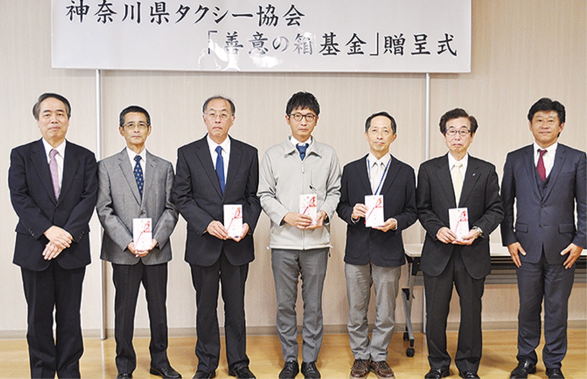神奈川県タクシー協会(伊藤宏会長)と同協会小田原支部(曽我良成支部長)が11月1日、おだわら市民交流センターUMECOで式典を開き、福祉関係の5団体に各20万円を贈呈した。
