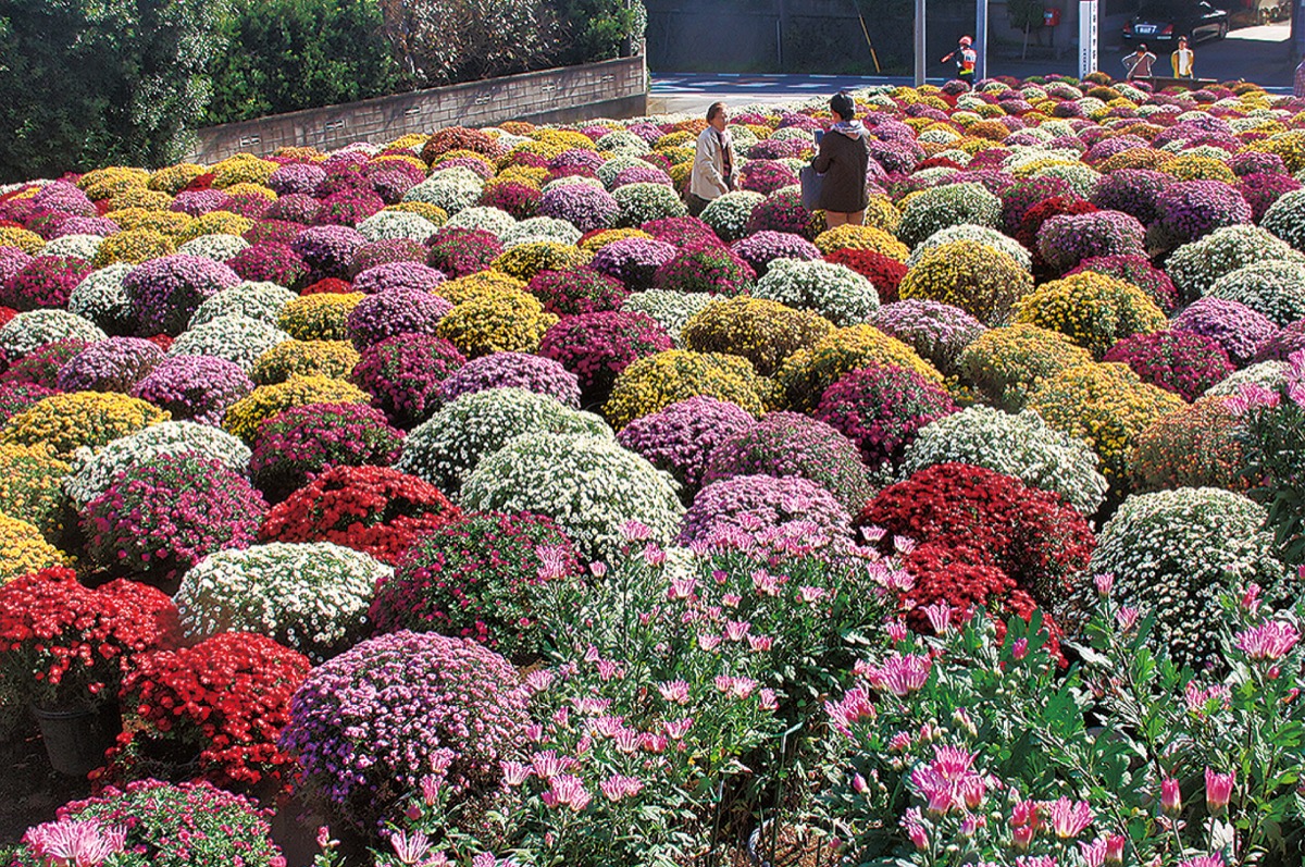 小田原市久野のざる菊園(鈴木三郎さん宅)で、今年もざる菊が見ごろを迎え、多くの観光客で賑わいを見せている。