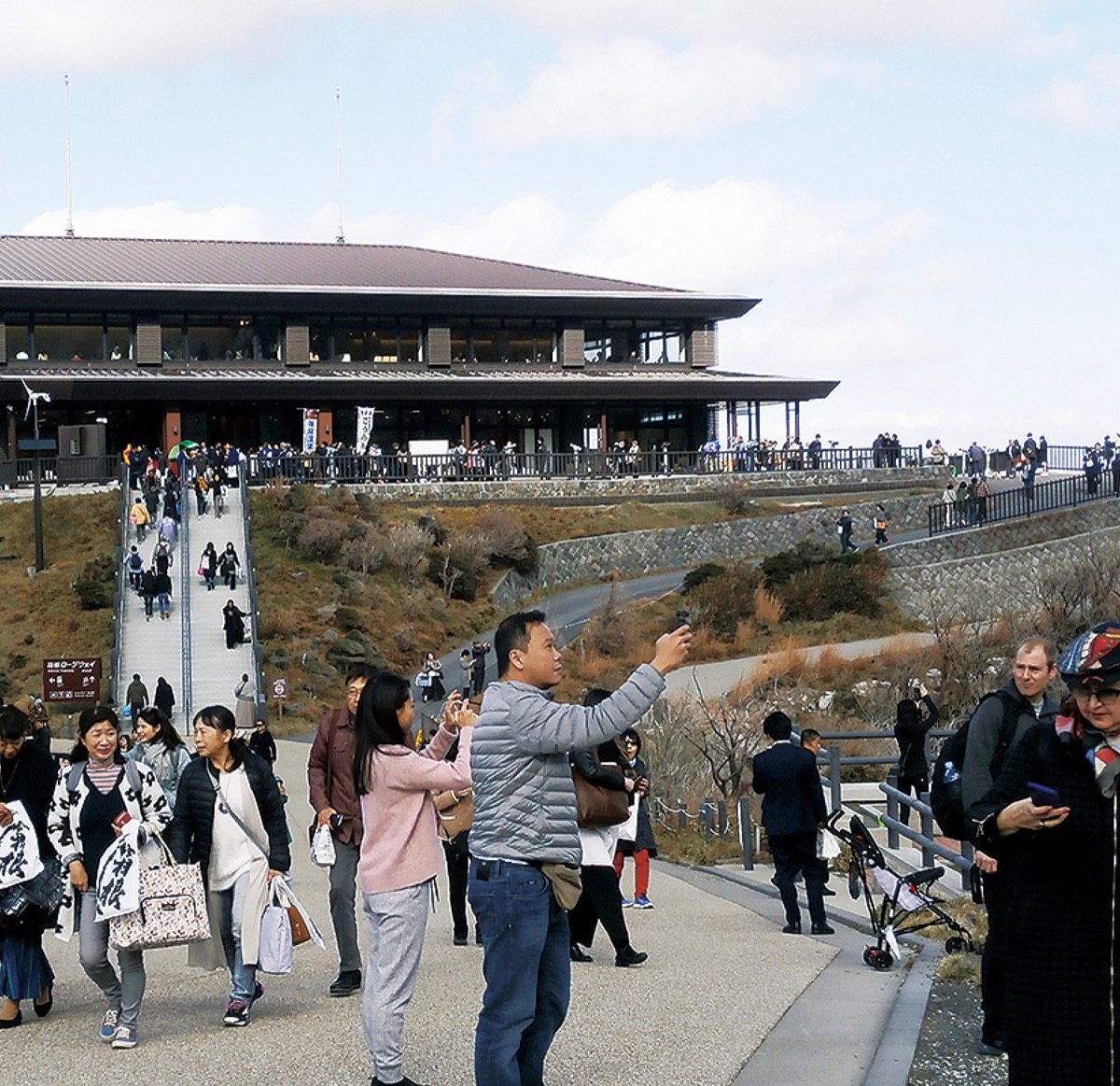 再開初日の大涌谷園地周辺は、久々に駐車待ちの車の列が見られた。観光の目玉でもある黒たまごの販売窓口には行列ができ、展望台付近では噴煙をバッグに写真を撮る観光客の姿があった。町観光協会や旅館組合、各関係者は訪れた観光客にサブレ等を手渡しもてなした。「天気も良く、この日を迎えられて良かった」と安堵の表情を浮かべたのは、奥箱根観光(株)の梁瀬雅之営業部長。「当初休止期間は1〜2カ月位とみていたが、予想より長い期間の休止になった。これからは箱根がひとつになり盛り上げていきたい」と話した。