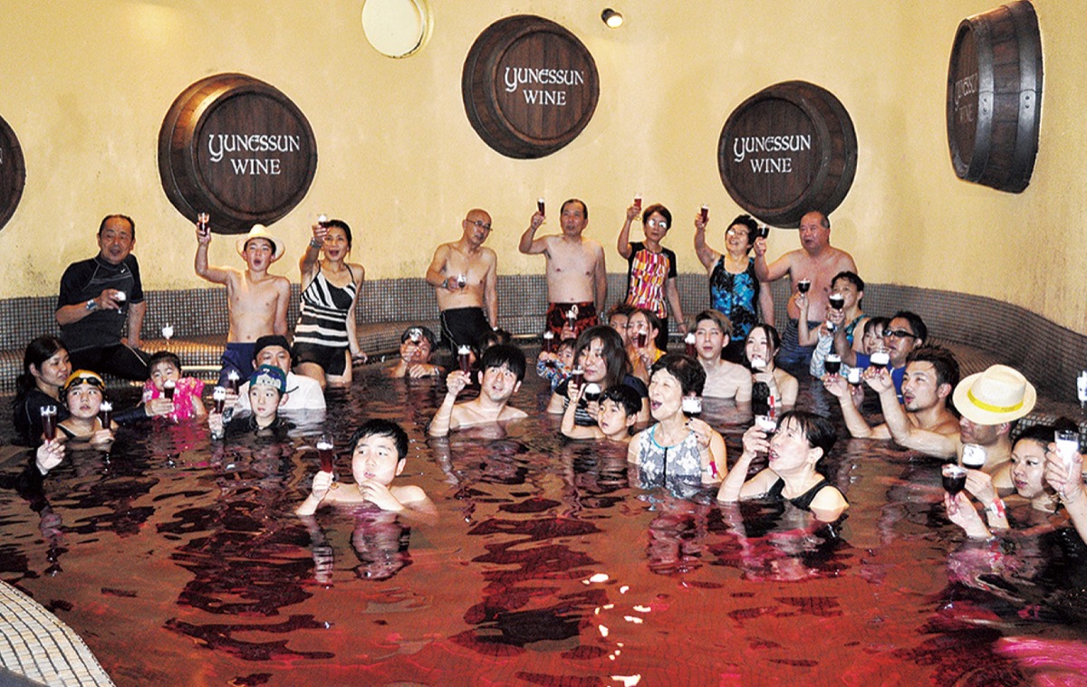 芳醇な香りが漂う湯舟で、来場客はソムリエから注がれたボージョレ・ヌーボーを味わった。「ボージョレに浸かる贅沢な入浴体験を楽しんで頂ければ」と同社では話している。ボージョレ・ヌーボー風呂は11月30日まで、1日3回実施。問い合わせは箱根小涌園ユネッサン【電話】0460・82・4126へ。