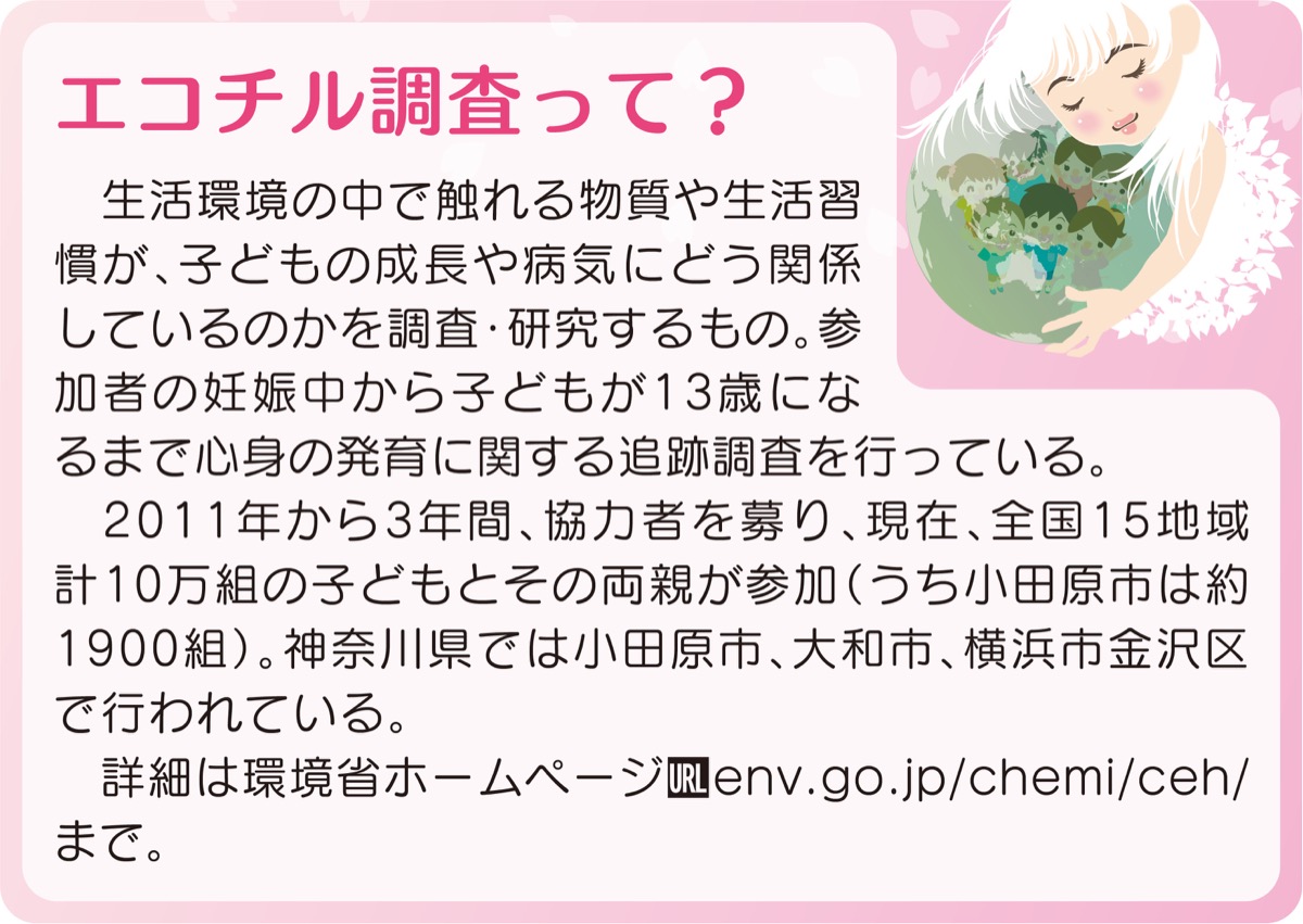 エコチル調査の対象地区の一つである小田原市では、約1900人の子どもが調査に協力している。学童期調査は、対象となる小学2年生に今年7月から順次、市内のエコチル調査事務所で行われている。