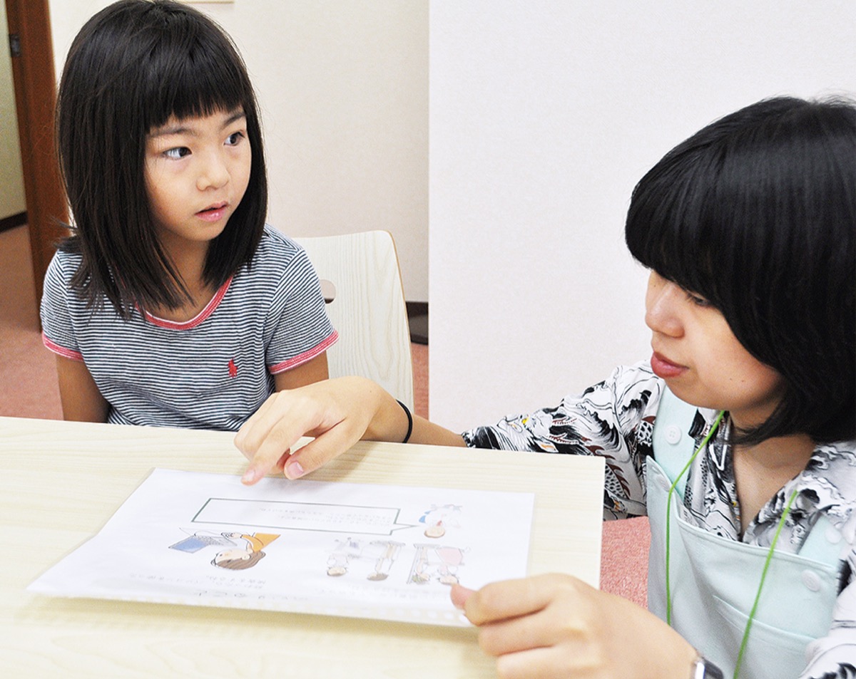 学童期調査を終えた加藤里紗さん(7)は、「楽しかった。パソコンゲームみたいで集中できた」と感想を話した。流産の経験があるという母親の亨子さんは「この調査をすることで、要因など未来に役立つ何かが分かれば良いと思う」と期待を寄せる。