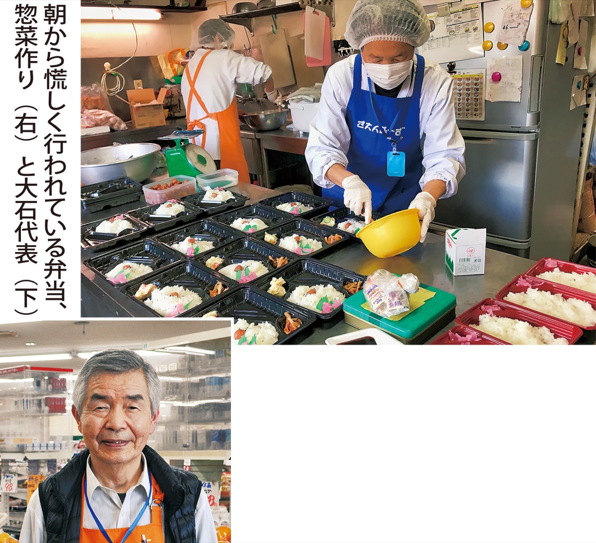 朝から午後までスタッフが製造を続け、忙しい時間は社長も品出しを行う。「地域のために最後まで品揃えにはこだわっていきたい」と大石代表は笑顔で話している。