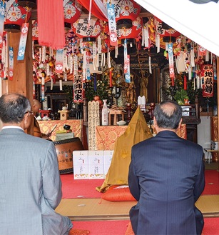 法要では、総世寺の安藤實英住職らによる読経が厳かな雰囲気の中行われ、地域の人や関係者は焼香し本尊を拝観した。安藤住職は「1日1日の積み重ねは人生そのもの。12年後も皆さんが元気で迎えられるよう願います」と話した。龍泉寺本開帳実行委員会の瀬戸祐明会長は観音堂の歴史を説明し「若い世代にこの歴史を言い伝えていくのが使命」と話した。