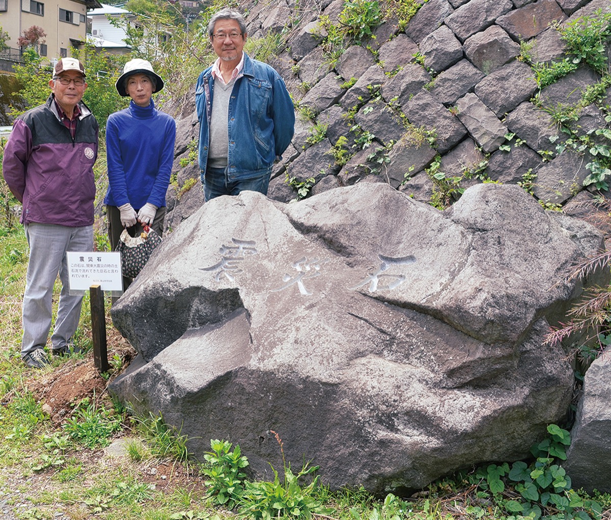 1923年(大正12年)の関東大震災による山津波に襲われた小田原市根府川。当時の惨状を後世に伝えようと、ねぶ川里山を守る会(廣井隆史会長)がこのほど、土砂として流れ着き、今なお現存する巨石を「震災石」と命名した。