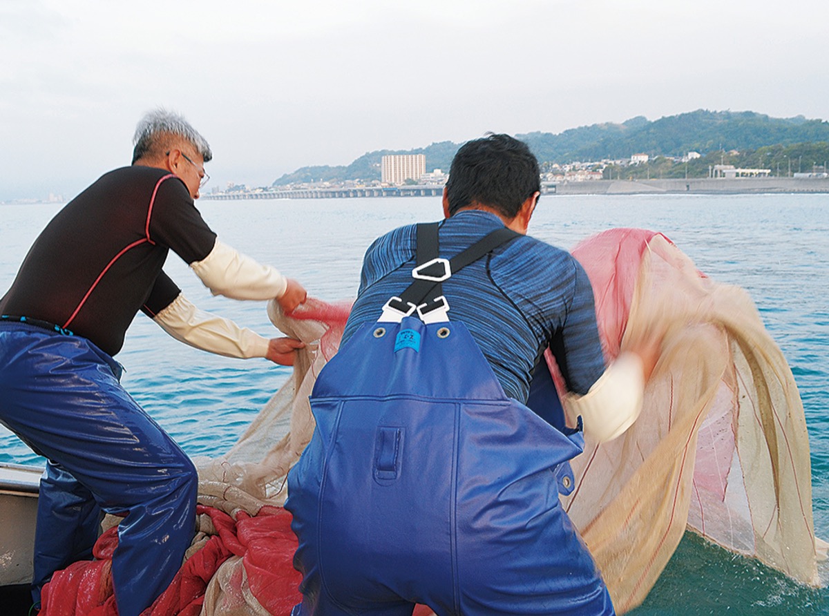 浜からの遠浅が続く湘南や横須賀の地域で盛んに行われている相模湾のシラス漁。小田原は水深が急に深くなる地形(どん深)のために不向きとされている。