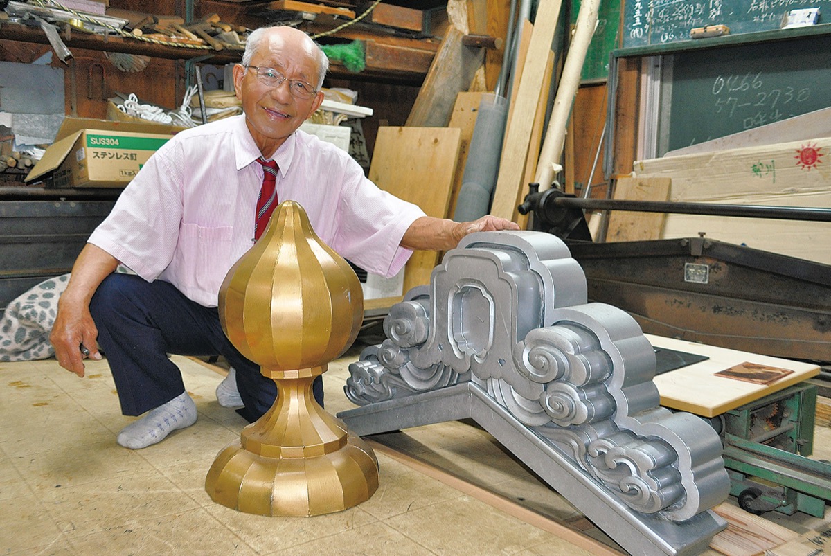 黄綬褒章は農業、商業、工業の業務に精励し、他の模範となるような技術や事績を有する人に贈られる。柳川さんは板金加工の職人として65年間技術を磨き上げ、屋根に取り付ける鬼飾りや文字看板も得意とする。