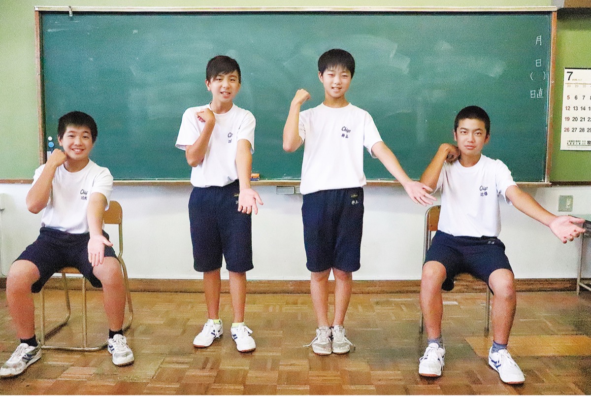 石井豪教諭が中心となり、2年生37人とサッカー部22人の有志が参加。昼休みを利用し、高齢者施設でよく踊られている『うめぼしのうた』の体操を23パートに分け石井教諭が撮影した。車いすの人も踊れるようにと座ったパターンも作るなど工夫も行った。