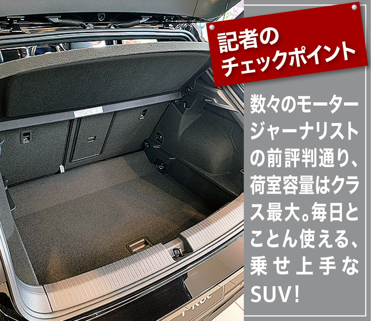 7月の発売から大人気の、フォルクスワーゲンのクーペSUV「ティーロック」。ゴルフベースのスタイリッシュなデザインは、他の輸入車を圧巻している。また、他ブランドの人気SUVと比べても、使い勝手が格段に向上した。