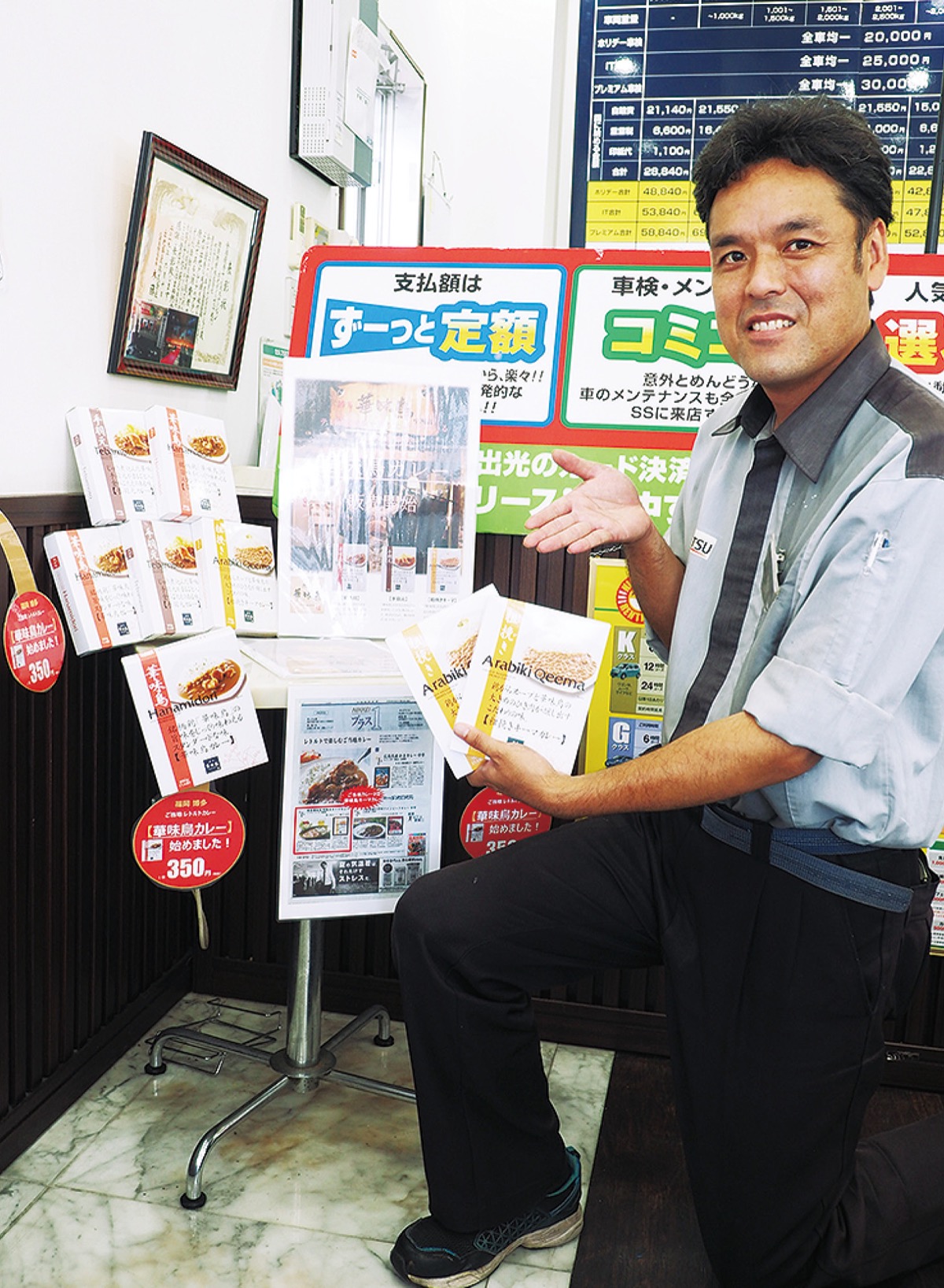 相原興業(扇町)が経営する小田原市内の出光ガソリンスタンド(SS)で販売されている「博多華味鳥(はなみどり)カレー」が話題を呼んでいる。