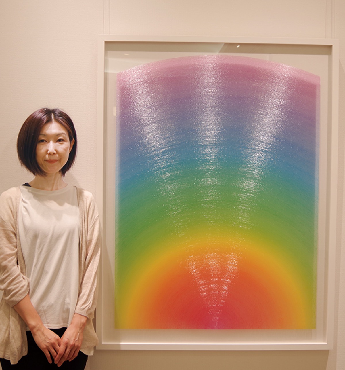 無数の細い線を引き重ね、色のグラデーションや動きによって光や水、空気などを表現する石川さん。これまで第9回タグボートアワード(2014年)グランプリやヤング アーティスツ ジャパン(2010年)準グランプリなどを受賞。国内外の展示で作品を発表している。