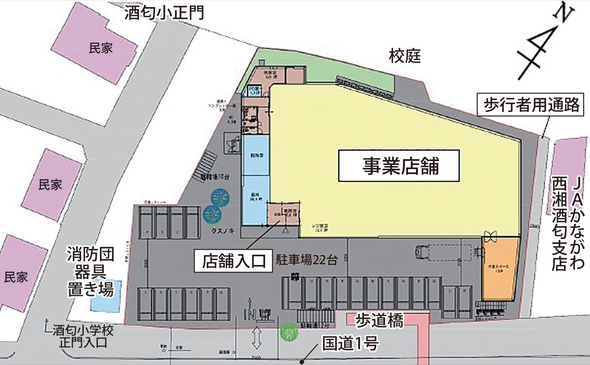 小田原市立酒匂小学校の正門に隣接する市有地に民間店舗を設置する用地活用事業が現在進められている。既存建築物の解体や整地等も民間事業者が請け負い、一定期間店舗運営を行う手法は市内初。来年10月の店舗オープンに向け、11月から工事が開始される。