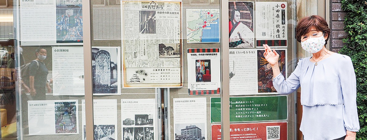 展示では市民会館のこけら落としとして上演された『寿式三番叟(さんばそう)』の様子が掲載された当時の「広報おだわら」や縁のある「外郎売」や「曽我兄弟」など歌舞伎の演目などを紹介している。10月29日まで。