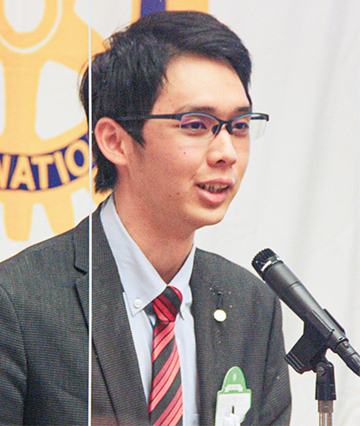 報徳会館で10月12日に開かれた小田原ロータリークラブ(加藤芳雄会長)の例会で、同クラブが支援する米山記念奨学生のインドネシア人大学生ウィスヌ・プラナタ・クスマさん(24)が卓話を行った。