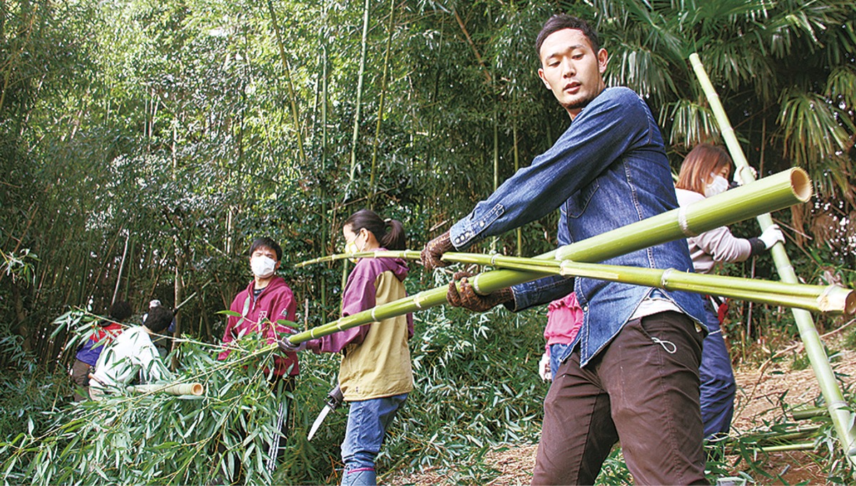 資源の有効活用につながる同事業は多くの人々の賛同を得て、11月1日、あきさわ園内の竹林で開催した伐採イベントには、園児を連れた親子をはじめ、学生、林業関係者、竹細工職人、市職員ら約40人が参加。林に分け入り、約4時間を掛け200本以上を切り出した。のこぎりでの枝打ちに挑戦した渡辺舞佳さん(8)は「難しかったけど、やり方を教わって上手にできた」と笑顔を見せた。
