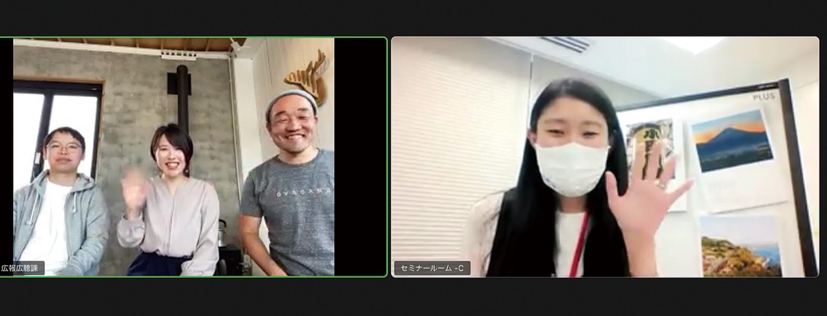 今回のテーマは「仕事を変えずに小田原暮らし〜リモートワーク・通勤編」。市内出身の杉山大輔さん、移住者の剣持貴志さん、長久保靖子さんがビデオ通話を使い、小田原からゲストスピーカーを務めた。