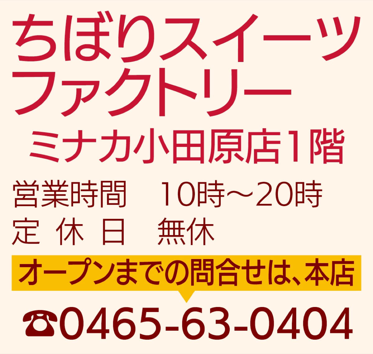 宿場町風情が特徴の「ミナカ小田原」(小田原駅東口に建設中)に、湯河原に本店を構えるちぼりスイーツファクトリーが「ミナカ小田原店」を12月4日にオープンさせる。市内では小田原ダイナシティ店に次ぐ2店舗目。