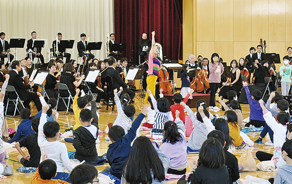 コンサートは、子どもたちに文化芸術への関心を高めてもらおうと、文化庁が行なっている「令和2年度子供のための文化芸術体験機会の創出事業」で実施されたもの。当日は迫力ある演奏のほか、指揮者体験や「運命」に合わせて身体で表現するボディパーカッションなど、鑑賞だけではなく新たな楽しみもあった。最後は生演奏による校歌合唱で終了した。纐纈校長は「感性が磨かれ将来の目標につながれば」と話した。