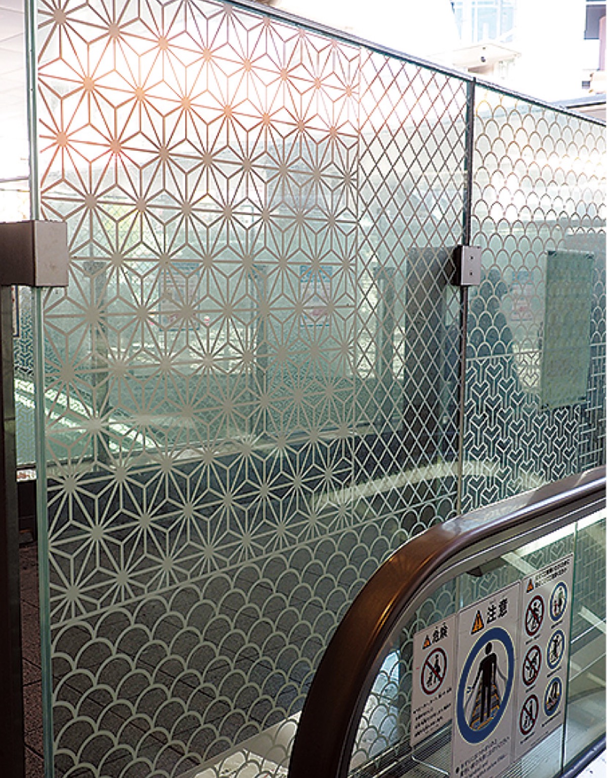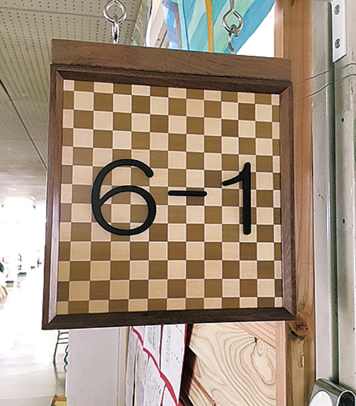 伝統工芸が今も息づく地域だからこそ、ハルネ小田原のエスカレーターの仕切りガラスには禰豆子柄=写真左=、小田原市豊川小学校のクラスサインには炭治郎柄=写真右=と探すのも楽しい。