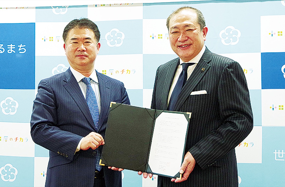 市役所で行われた締結式では、守屋輝彦市長と同大ドローン社会共創コンソーシアム代表の古谷知之教授(総合政策学部)が協定書に署名。協定には地域社会の発展や観光、防災、エネルギーといった分野の振興に自律移動、自動運転といった先端技術を利活用することなどが盛り込まれている。