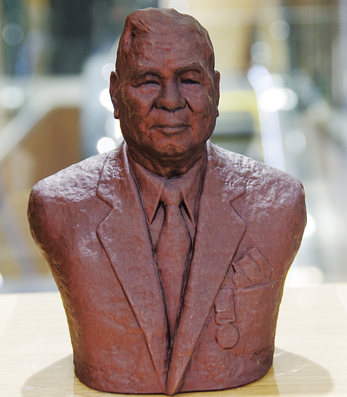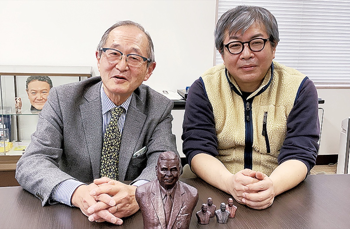 この像は、昨年3月に閉館した星崎記念館・小田原市立図書館に設置されていた銅像を、小田原市寿町に本社を置く文化堂印刷株式会社(萩野健治代表取締役社長)が3Dプリンターで複製したもの。同社では、印刷以外の新分野を開拓しようと、昨年5月にフルカラー3D樹脂プリンターを導入。国内では20台ほどしかない最新機で、リアルな色と質感の再現を可能とし、フィギュアなどの製作を行ってきた。新図書館の開館記念事業を考えていた市図書館は「最新の技術を使った3Dプリンターを扱っている企業が市内にあると知り、星崎像の複製を思いついた」という。