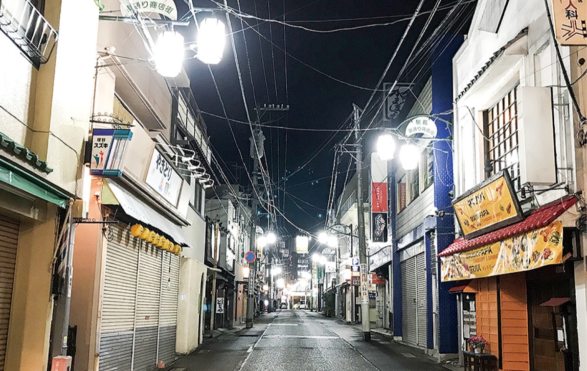 飲食店が連なる小田原駅前東通り商店街では12日、33ある飲食店のうち半数が休業した。営業した店舗もすべて時短要請対象の午後8時に店を閉め、街灯だけが通りを照らしていた。