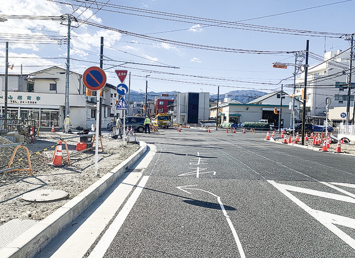 都市計画道路・栄町小八幡線で工事が進められていた国道255号線「緑町駅東交差点」から市道0015号線「広小路南交差点」までの区間約70mが、3月16日(火)午後3時に開通する予定だ。
