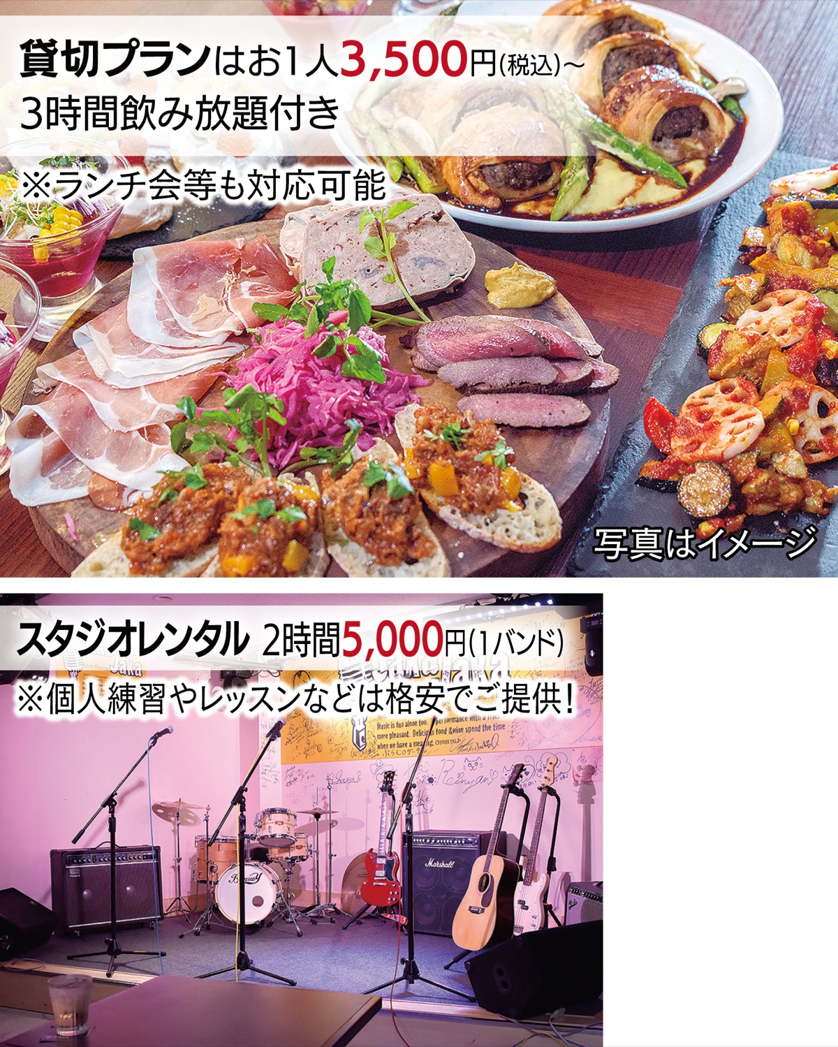 レンタルスタジオとしても人気のJAKA JAKA。2時間5000円のバンド向けプランのほか、個人練習やレッスンとしての活用も格安で相談に応じるので、こちらも気になる人は連絡を。