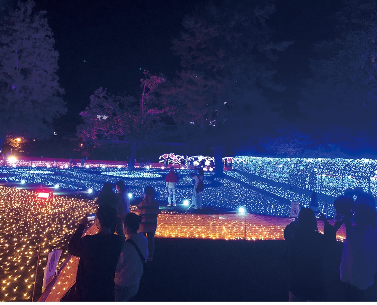 イルミネーションは4月4日(日)まで午後6時から8時に開催。入場料500円、高校生以下は無料(今年3月卒業生含む、年齢が分かるものを持参)。混雑時には入場を制限する場合がある。問い合わせは、同ツーリズム【電話】0465・46・8260へ。