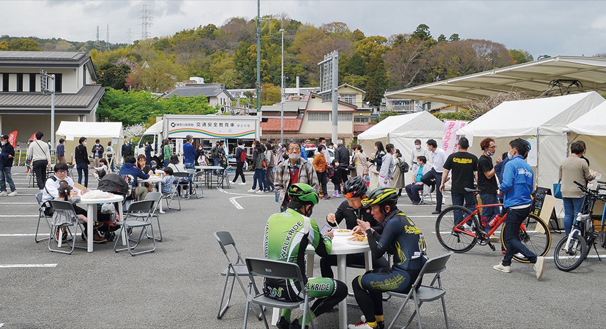 会場では通りかかったサイクリストが足を止め、箱根の店から運び込まれた豆腐やキッチンカーの軽食を食べたり、自転車関連のブースをのぞいたりしていた。また小田原警察署の協力による交通安全教育車「ゆとり号」では、自転車の運転シミュレーションなどを笑顔で体験する子どもの姿が見られた。