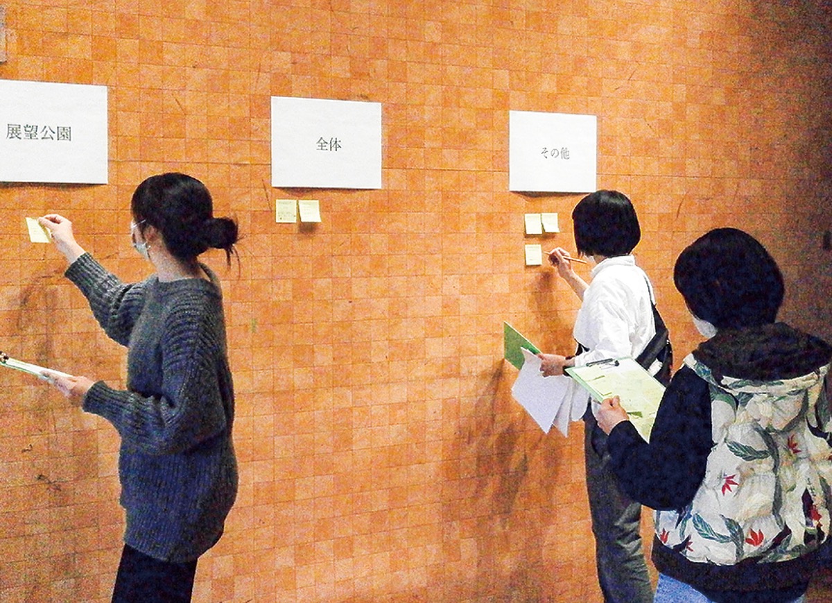 今年度は、荒井城址公園から取り組む。4月3日、同公園で親子連れなどが参加し、課題点などを洗い出す探検が行われた。10日には町民センターで、現在の公園に対する意見や要望を出し合う「公園づくり検討会」が開かれた。参加した24人の町民から、駐車場の数やトイレ整備の課題、オムツ交換スペース、案内板の設置など改善点や要望などが出され、公園を管轄する担当課職員と共有した。
