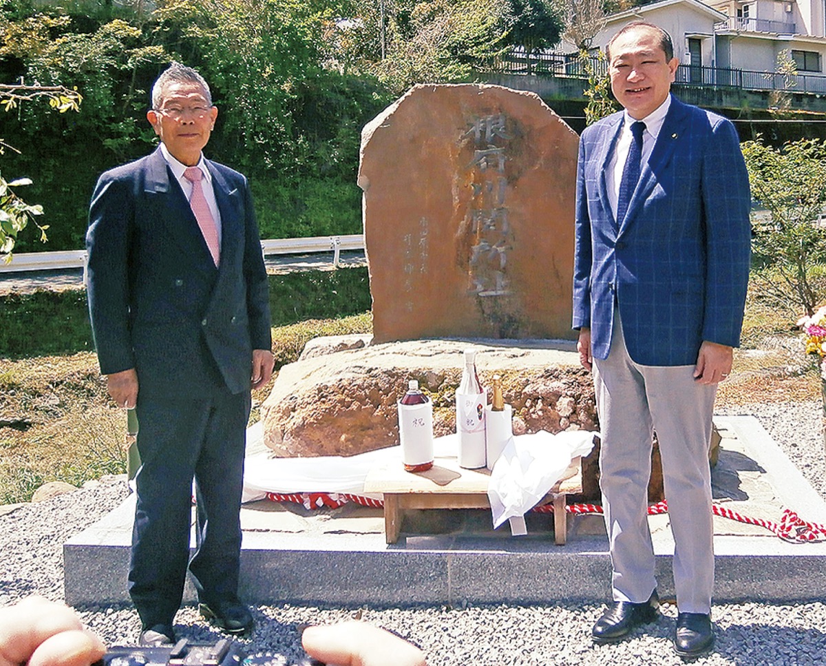 碑の建立は昨年、内田会長が顧問を務める、地元有志らの「ねぶ川里山を守る会」(廣井隆史会長)が活動の一環として計画。同会は、おかめ桜の植栽や白糸川七滝周辺の整備、根府川地区城郭遺構群の保存など、地域資源の保全・活用に尽力している。