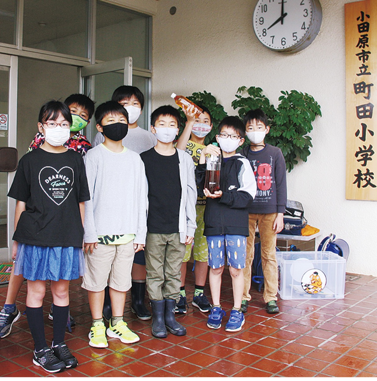 小田原市立町田小学校で5月20日、21日の2日間、廃食油の回収活動が行われた。