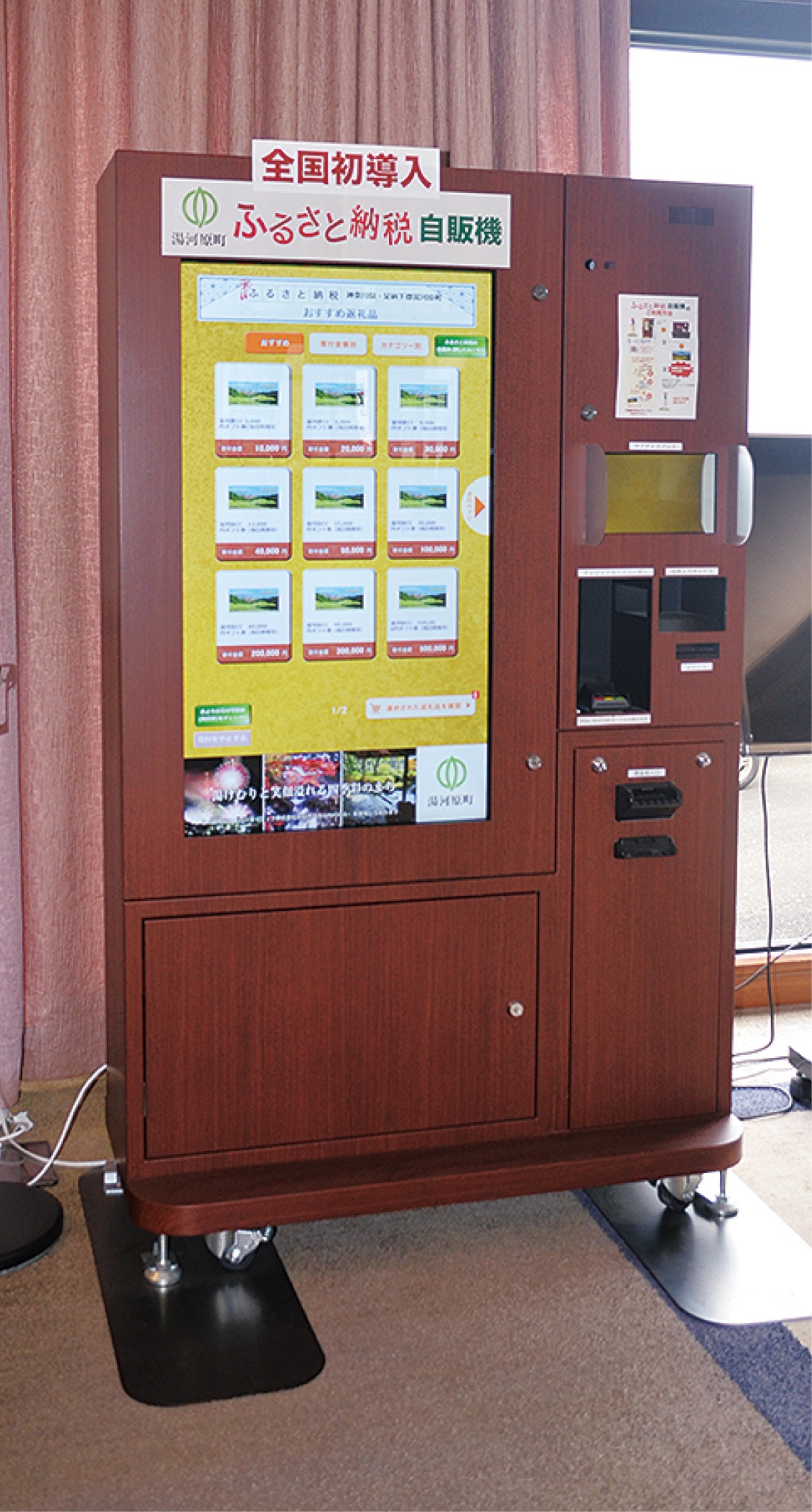 湯河原町が昨年12月、湯河原カンツリー倶楽部に設置したふるさと納税自販機の稼働が好調だ。町によると、寄付額は今年3月までの集計で176件772万円。町の担当者は「想定以上の件数と金額。業者のPR活動が大きかったが、気軽さも寄付につながったのでは」と話す。