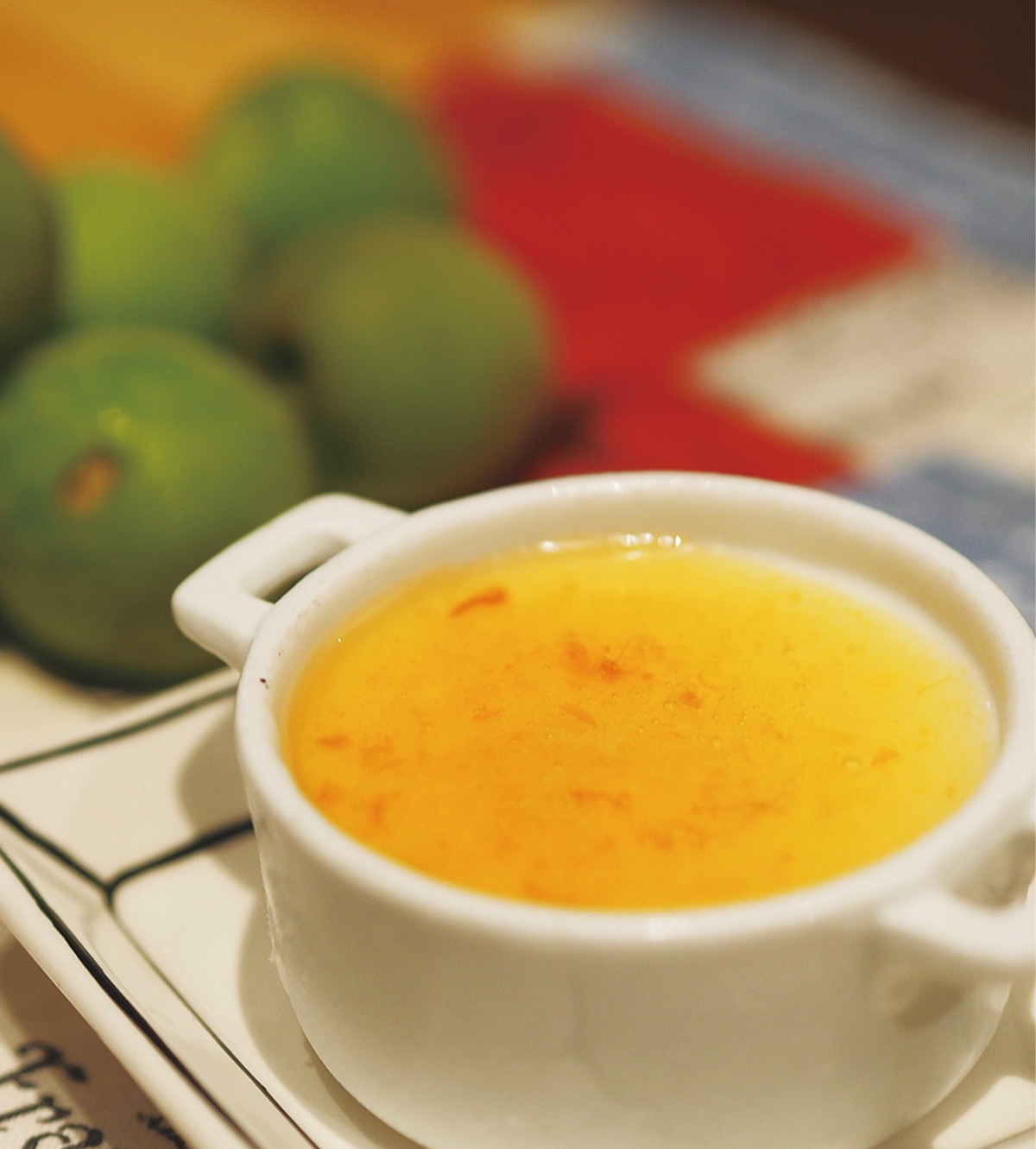 5月にSNSで梅林の活動を知った浅利さんは、「地元の飲食店として協力したい」とデザートでの活用を思い立った。試行錯誤の上、梅を刻んで蜂蜜などで煮た梅ソースが完成。クリームチーズや杏仁豆腐に合わせ、常連客に試食してもらうと「爽やかな酸味が絶妙」と好評を得た。