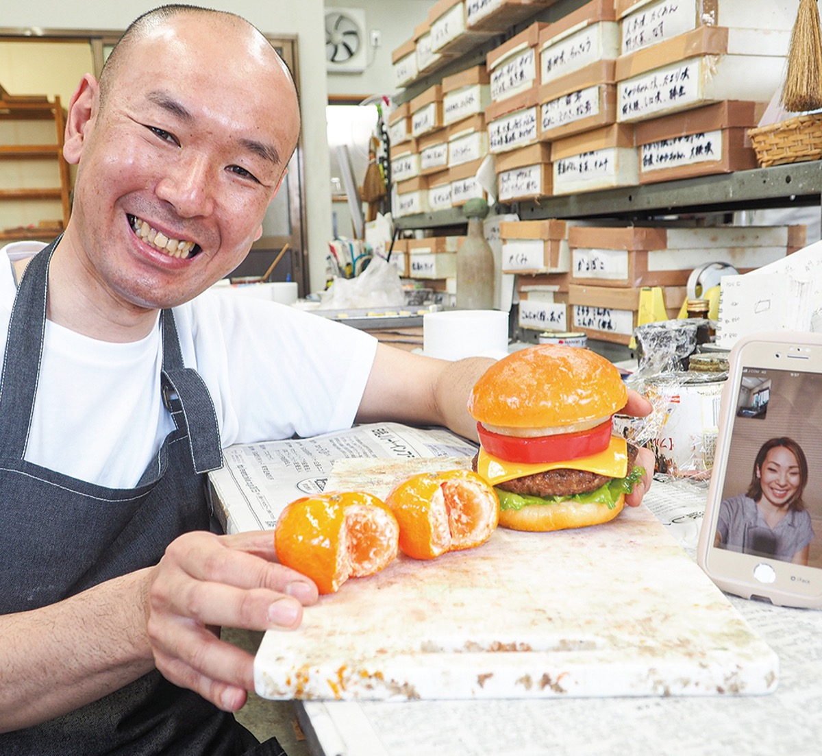 本多さんは「突然の連絡に驚いたが、やってみたい」とすぐに快諾。「アメリカ人が見たことがあるものだと、より食品サンプルのすごさが伝わる」とのハアスさんの発案でハンバーガーなどを題材に小物入れなど実用性を兼ねた商品の企画がスタートした。海をまたいでの打ち合わせを重ね、6月上旬にミカンのペン立てや寿司のスマホスタンドなど5点の商品が完成した。鮮やかな発色を好む海外の感覚に合わせ、色を強くするなど工夫も行った。「完成度の高さが伝わる」と手応えを感じているハアスさんは、すでに買い付けた寄木細工の商品と合わせ、夏から販売を始める予定だ。本多さんは「日本独自の文化、海外でも喜んでもらえたら」と思いを語った。