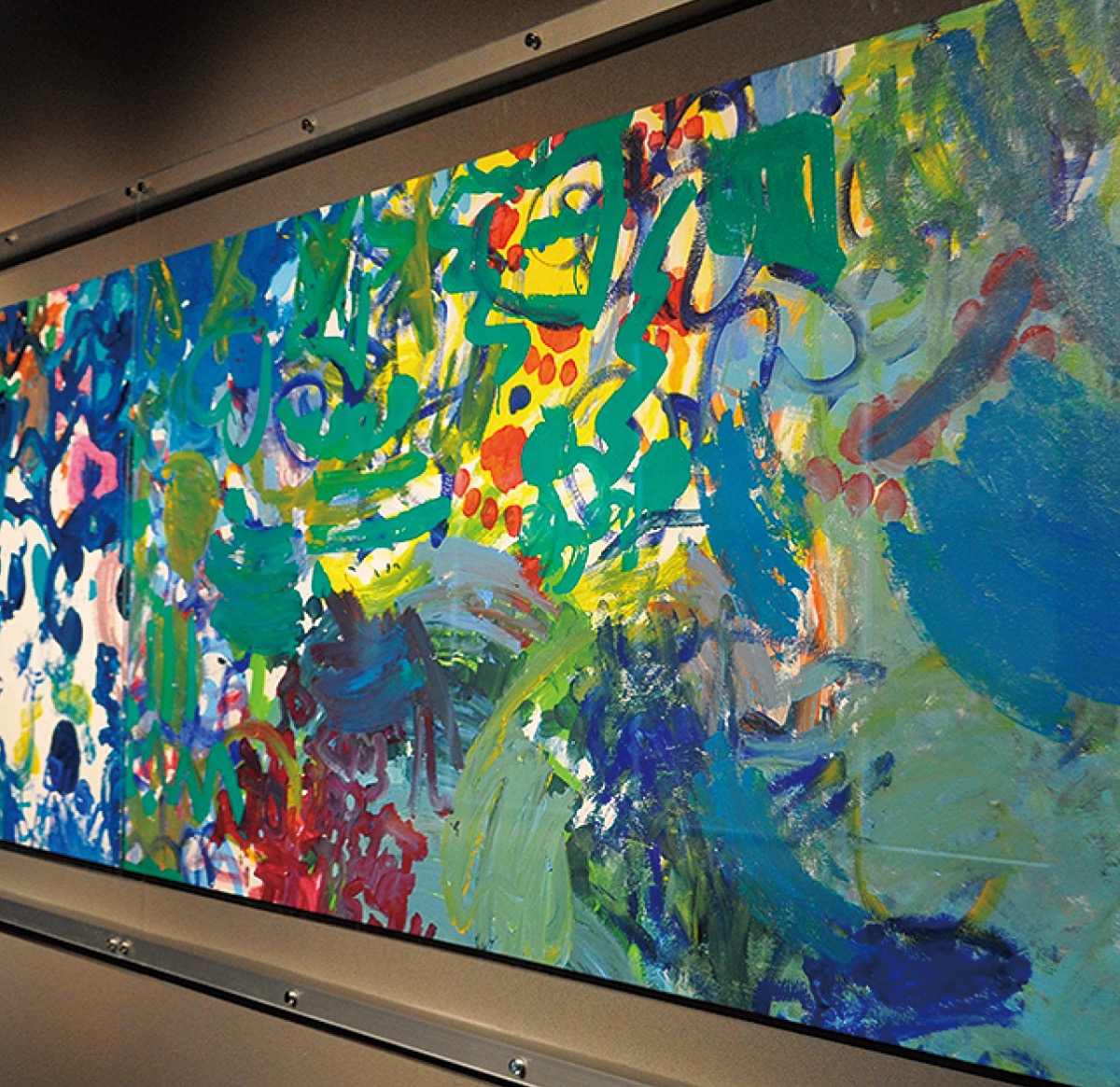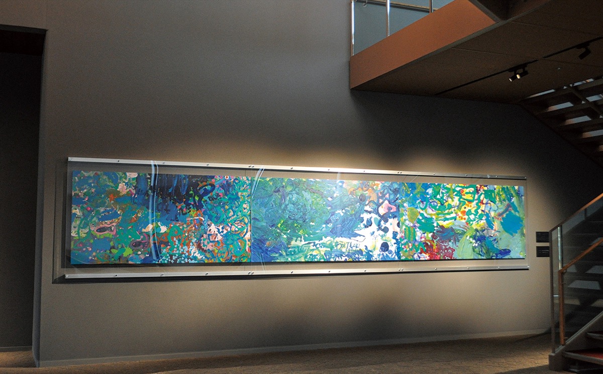 • ホワイエに飾られた、横6m、縦1mの絵画