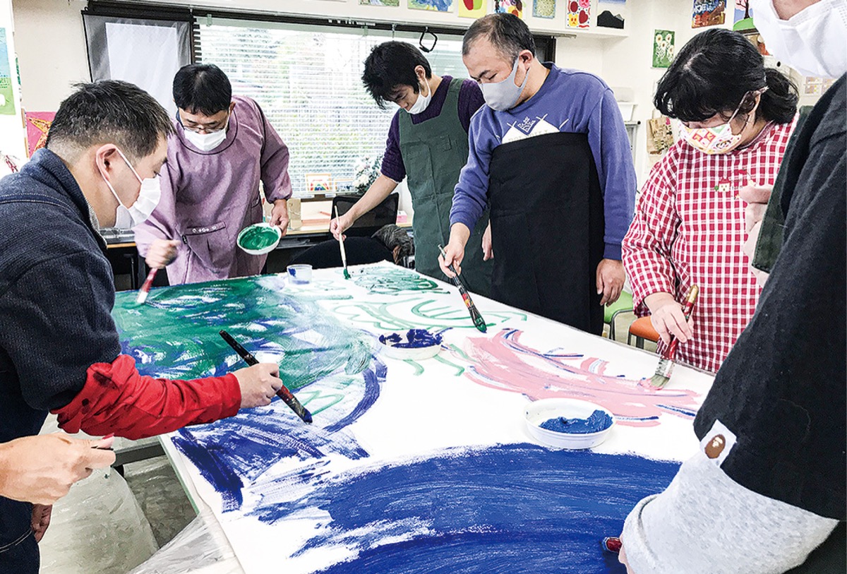 アール・ド・ヴィーヴルは、障害がある人が表現活動を通じて社会と繋がり、自分らしく生きることをサポートしている認定NPO法人。アトリエでは、具象画、抽象画、文字を描く人など、個性豊かなメンバーが創作活動をしている。