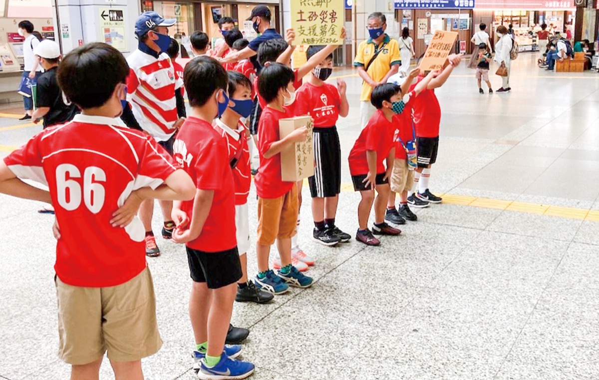 小田原ラグビースクールは7月11日、小田原駅アークロードや城山陸上競技場で募金活動を実施。スクール生が駅利用者や近隣のラグビースクールなどに義援金を募り、18万7695円が集まった。寄付金は市ラグビーフットボール協会から14日、全額が熱海市義援金窓口に振り込まれた。