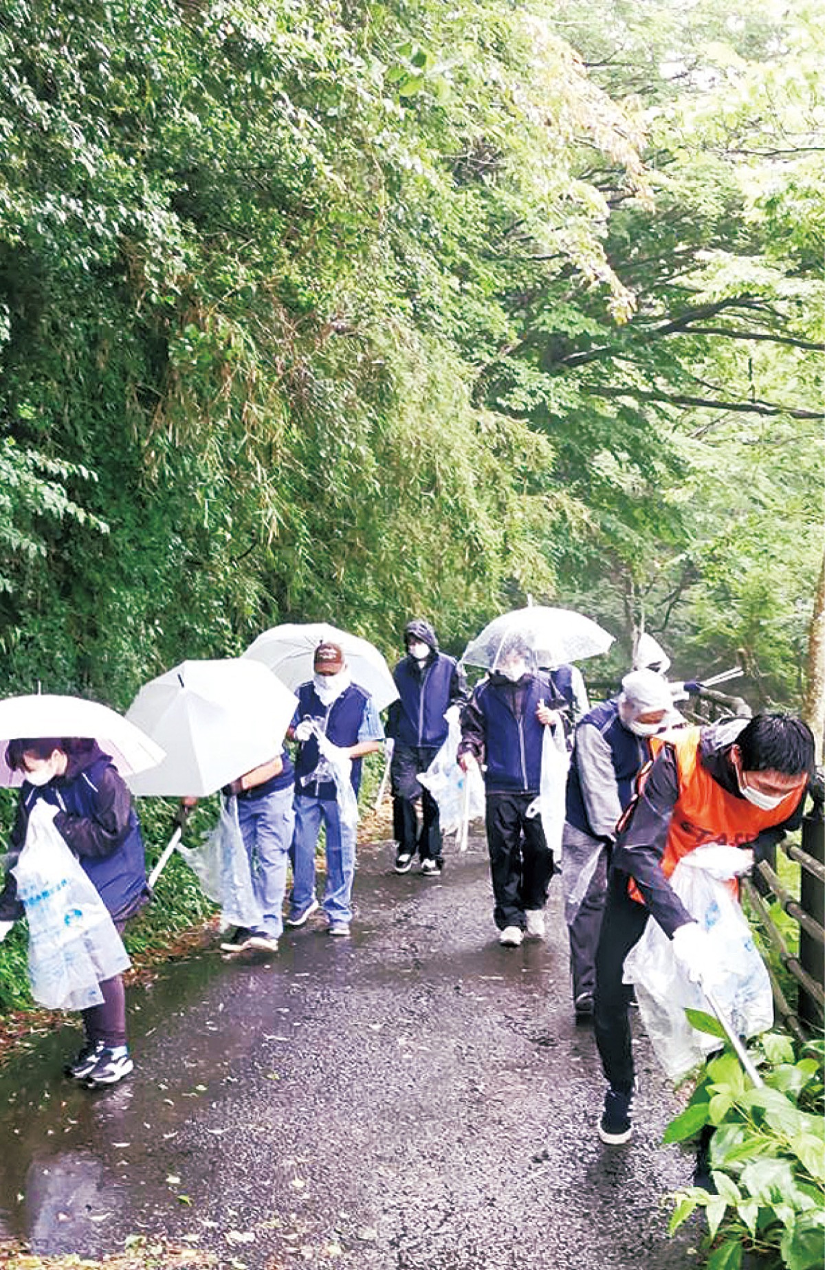 夏休みを前に箱根町内をきれいにしようと、箱根のホテル5社の社員らが7月14日、一斉清掃「箱根クリーン作戦」として、雨の中ごみを集めた。