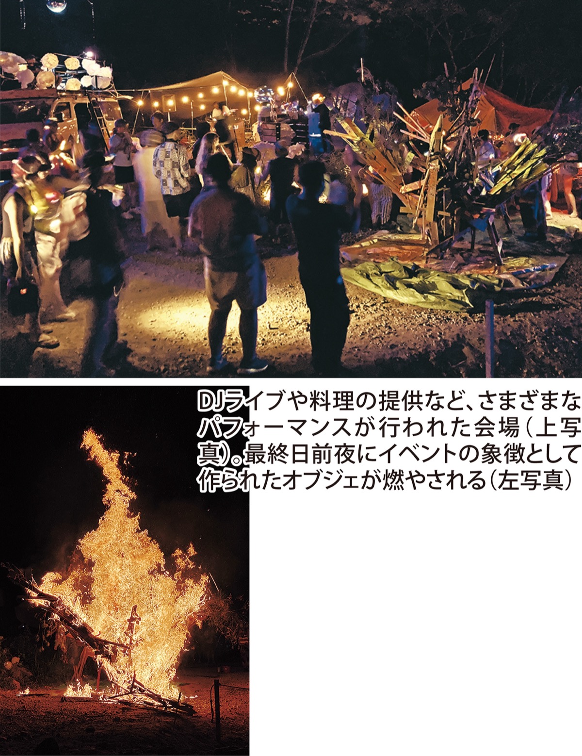 湯河原でのイベント期間中はキャンプ滞在者のほか、DJや料理のパフォーマンスなどを行う「テーマキャンプ」が16チーム登場。参加者と表現者が混在する独特な空間が作り出されていた。